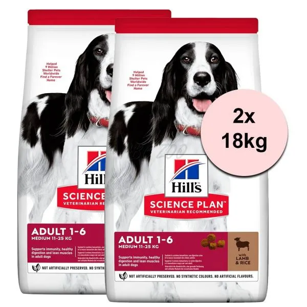 Hill's Science Plan pre stredné dospelé psy s jahňacím a ryžou 2 x 18 kg