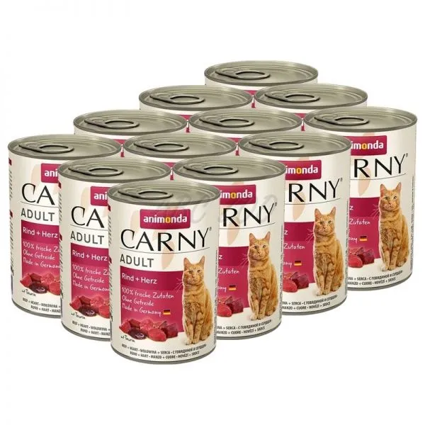 Kompletné krmivo pre dospelé mačky ANIMONDA CARNY ADULT s hovädzími srdciami.