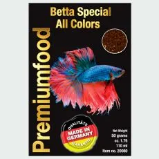Vysokokvalitné nemecké krmivo pre ryby druhu Betta - všetky farebné varianty.