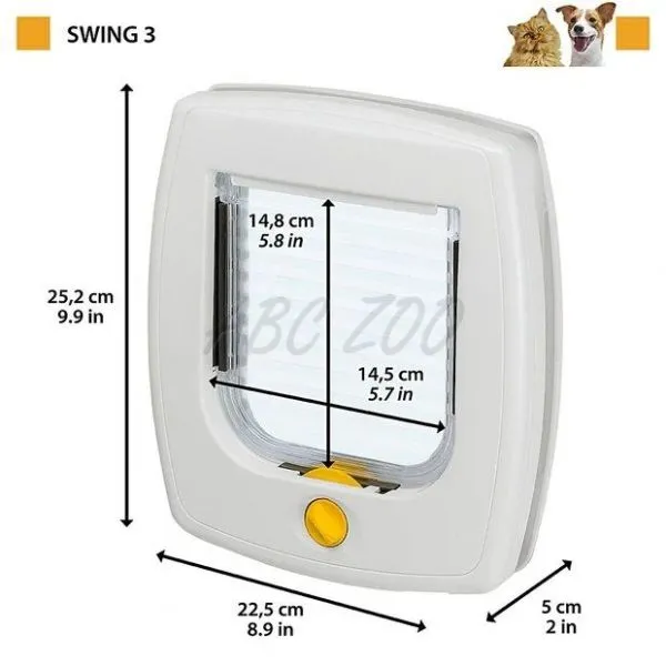 Štvorpolohové plastové dvierka Ferplast SWING 3 pre mačky a malých psov s transparentným okienkom a magnetickým uzáverom.