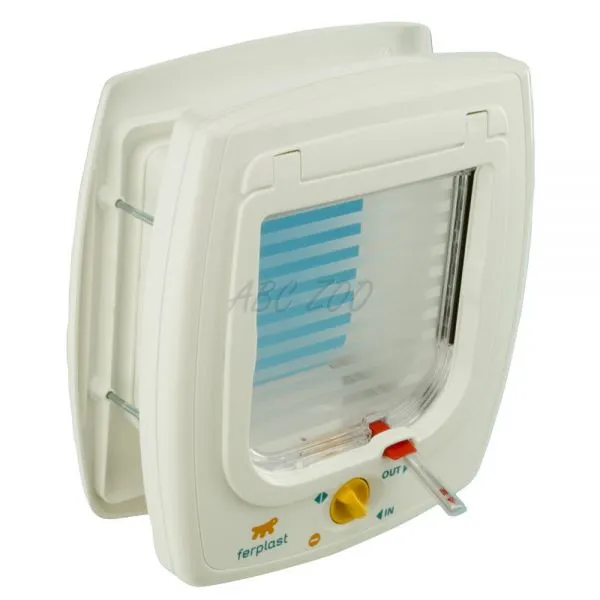Štvorpolohové plastové dvierka Ferplast SWING 7 pre mačky a psov s transparentným okienkom, magnetickým uzáverom a kľúčom.