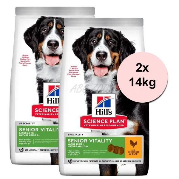 Hill's Science Plan Senior Vitality pre veľké staršie psy s kuracím a ryžou 2 x 14 kg
