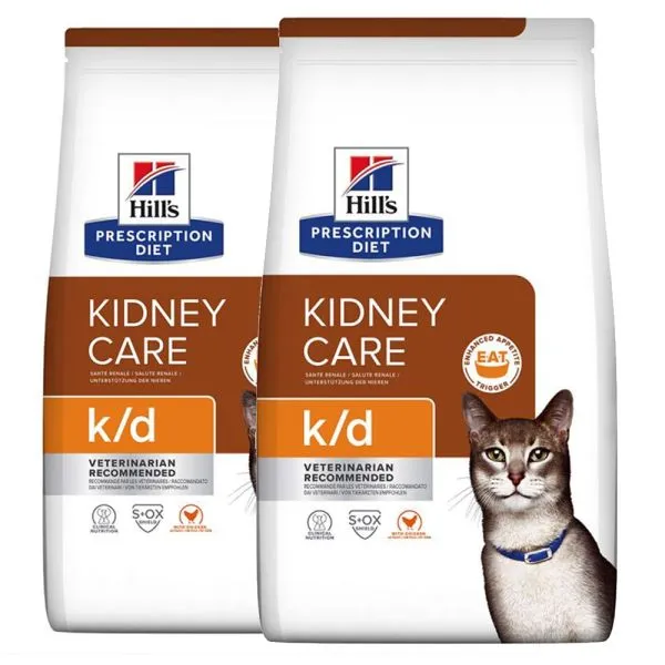 Keď majú mačky poškodené obličkové tkanivá, obličky nemôžu fungovať tak dobre ako predtým. Stav sa nedá zvrátiť, ale jeho progresia sa môže spomaliť. Dietetické krmivá pre ochorenia obličiek sú navrhnuté tak, aby pomáhali znižovať zaťaženie obličiek a umožňovali im tak efektívnejšie fungovanie. U mačiek trpiacich zníženou funkciou obličiek môže dôjsť k strate chuti do jedla a môže klesnúť ich príjem potravy.Odborníci na výživu a veterinári spoločnosti Hill‘s vyvinuli klinickú výživu Prescription Diet k/d značky Hill‘s, ktorá pomáha chrániť životne dôležité funkcie obličiek vašej mačky, zlepšuje jej chuť do jedla a zvyšuje príjem potravy. Toto suché krmivo je vyrobené z kuracieho mäsa a má neodolateľnú chuť, ktorú si vaša mačka obľúbi. Krmivo Prescription Diet k/d je v skutočnosti klinicky overenou výživou na zlepšenie kvality a predĺženie života.