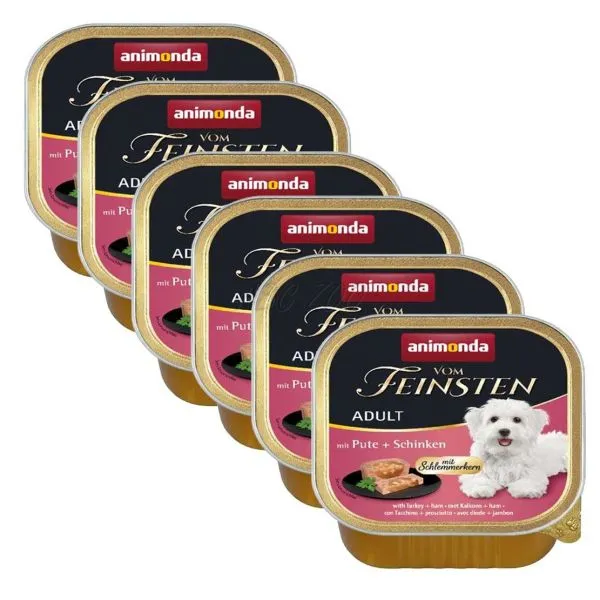 Animonda Vom Feinsten je vanička plnená šunkou, s morčacím mäsom pre dospelé psy všetkých plemien.