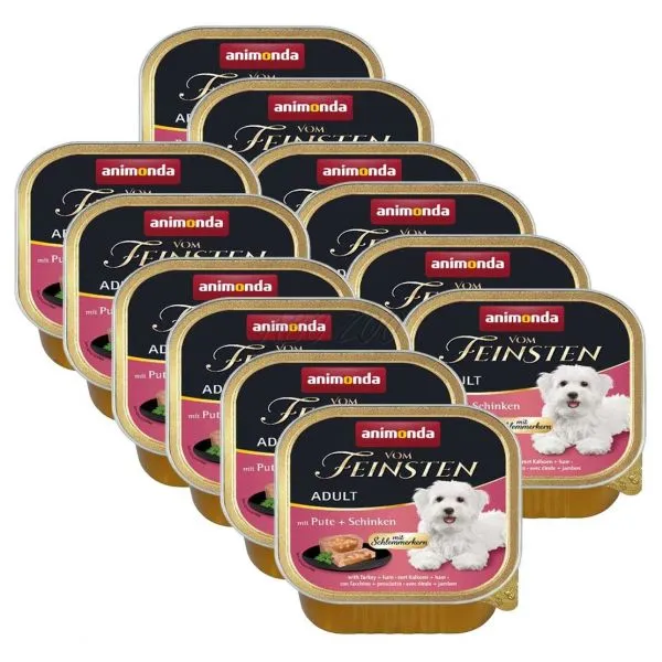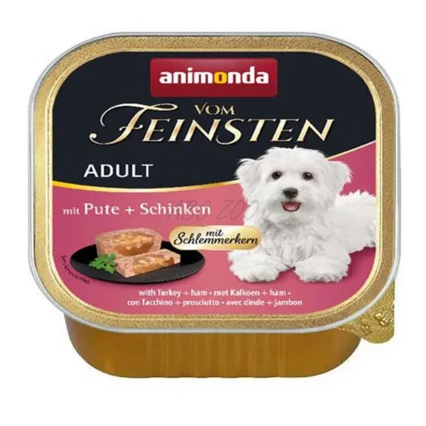 Animonda Vom Feinsten je vanička plnená šunkou, s morčacím mäsom pre dospelé psy všetkých plemien.