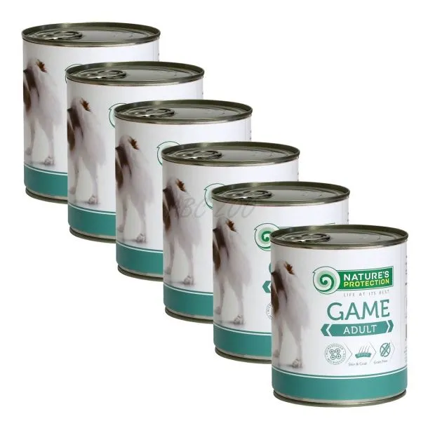 Nature's Protection je bezobilninové krmivo v konzerve pre dospelé psy s mäsom z diviny v lahodnom vývare.