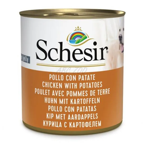 Schesir je prírodné krmivo v konzerve z kuracieho mäsa so zemiakmi pre všetky plemená psov.