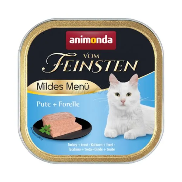 Animonda paštéta vo vaničke je kompletné krmivo s morčacím mäsom a pstruhom pre dospelé mačky.