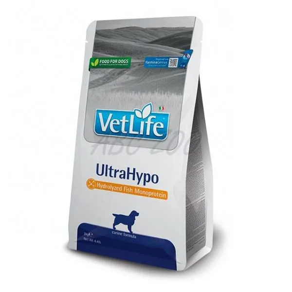 Farmina Vet Life UltraHypo je kompletná veterinárna diéta pre psy s hydrolizovanou bielkovinou, odporúčaná na manažment pacientov s potravinovou alergiou, potravinovou intoleranciou a tiež na zlepšenie kvality kože a srsti v prípade dermatóz a nadmerného vypadávania srsti.