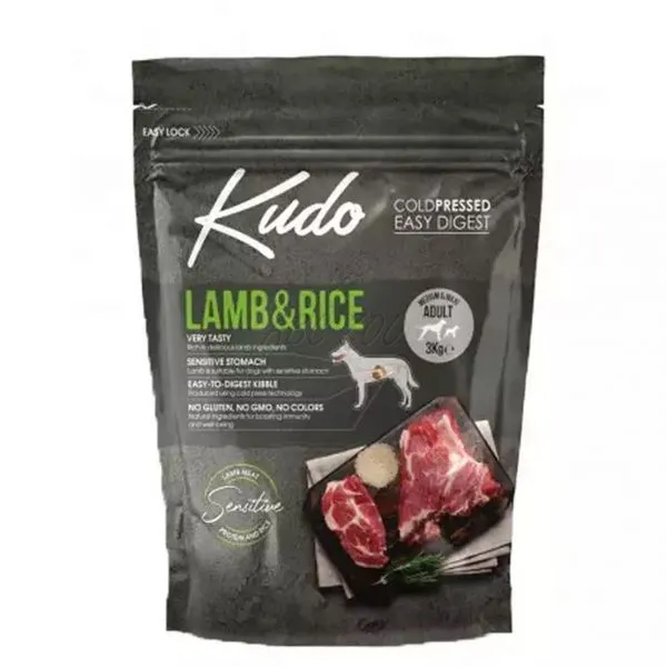 Kudo je kompletné krmivo s nízkym obsahom obilnín, pre dospelé psy stredných a veľkých plemien s obsahom jahňacieho mäsa.