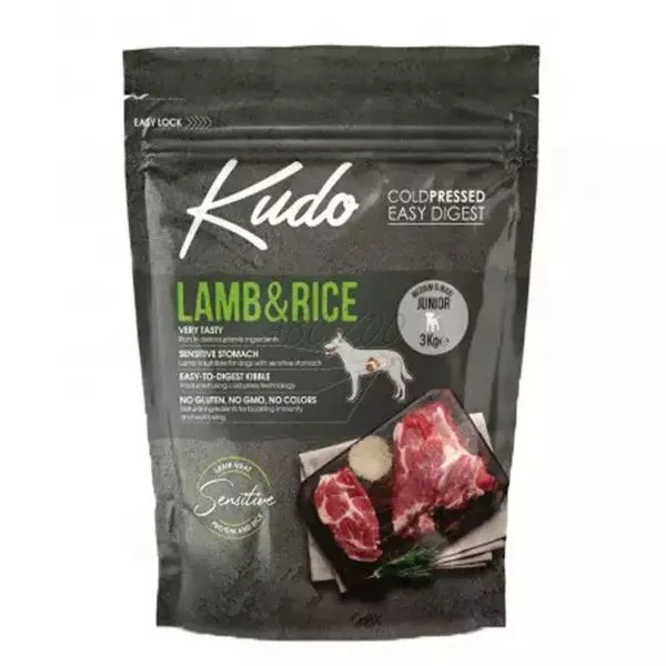Kudo je kompletné krmivo s nízkym obsahom obilnín, pre šteňatá stredných a veľkých plemien s obsahom jahňacieho mäsa.