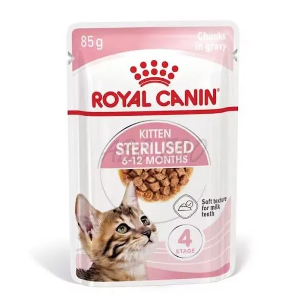 Mnoho majiteľov sterilizuje svoje mačiatka približne od 6 mesiacov veku. Do 48 hodín po operácii sa metabolizmus vášho mačiatka spomalí – ale pravdepodobne bude hladné ako kedykoľvek predtým! Pretože úroveň aktivity vášho sterilizovaného mačiatka je stále na vzostupe, potrebuje krmivo, ktoré podporuje zdravý rast bez podnecovania zbytočného priberania. ROYAL CANIN® Sterilized Kitten in Gravy je špeciálne vyvinutý tak, aby podporoval nutričné ​​potreby sterilizovaných mačiatok v „konsolidačnej fáze“ ich rastu. Táto receptúra ​​je vhodná pre sterilizované mačiatka vo veku 6 až 12 mesiacov, pretože prechádzajú obdobím významných fyzických a behaviorálnych zmien. Toto prispôsobené krmivo ponúka vlhké kúsky v omáčke, ktoré majú optimálnu veľkosť, štruktúru a chuť pre rastúce mačiatka. Obsahuje tiež mierny obsah tuku, ktorý pomáha znižovať riziko priberania, pričom stále obsahuje optimálne hladiny bielkovín, vápnika a fosforu pre zdravý vývoj. Receptúra ​​tiež obsahuje živiny ako vitamín C a E na podporu vývoja zdravého imunitného systému mačiatok. Ukázalo sa, že tieto antioxidanty v potrave stimulujú vyšší a rýchlejší nárast protilátok po očkovaní. Vďaka kombinácii prospešných prebiotík (MOS) a vysoko stráviteľných bielkovín pomáha ROYAL CANIN® Sterilized Kitten in Gravy tiež podporovať zdravú rovnováhu črevnej mikrobioty (črevnej flóry) pre dobré trávenie. ROYAL CANIN® Sterilized Kitten in Gravy bol vytvorený tak, aby uspokojil aj tie najnáročnejšie mačacie chuťovky. Toto mokré krmivo ponúka vášmu sterilizovanému mačiatku pozitívny senzorický zážitok, podporuje zdravú hydratáciu a je ideálne na zmiešané kŕmenie so suchou granulovanou diétou ROYAL CANIN® Kitten. Vedeli ste, že nutričné ​​potreby mačiatok sa menia, keď rastú? Keď vaše sterilizované mačiatko dosiahne 12 mesiacov, bude potrebovať stravu, ktorá je špeciálne prispôsobená tak, aby vyhovovala ich nutričným potrebám ako dospelej mačky.