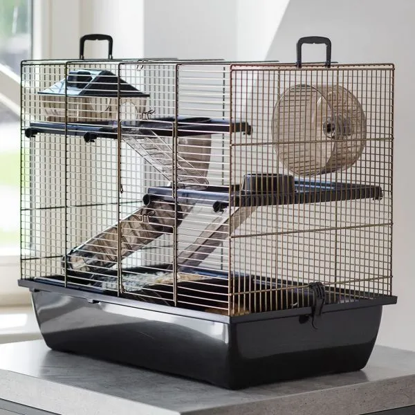Dizajnová klietka pre menšie hlodavce s kompletným príslušenstvom.