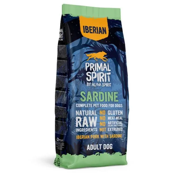 Primal Spirit Dog je unikátne zdravé krmivo pre všetky plemená dospelých psov s vysokým obsahom mäsa z ibérskeho prasaťa a čerstvých sardiniek, doplnené o hydrolyzovanú ryžu.