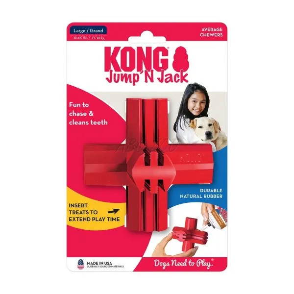 Kong Dental Jump'N Jack je dentálna hračka, ktorá zábavne skáče a má jedinečný dizajn, ktorý je skvelý na ohrýzanie.