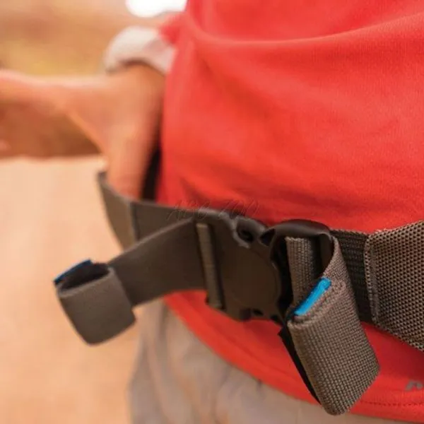 • dve posuvné karabíny na pripojenie vodítka, miesto pre fľašu s vodou a bezpečné vrecko na zips