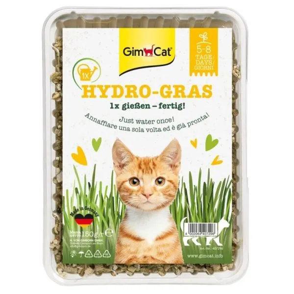 GimCat Hydro-Gras je doplnok stravy pre mačky, ktorý podporuje trávenie, najmä ak sa potrebujú zbaviť prehltnutej srsti a zmotkov chlpov.