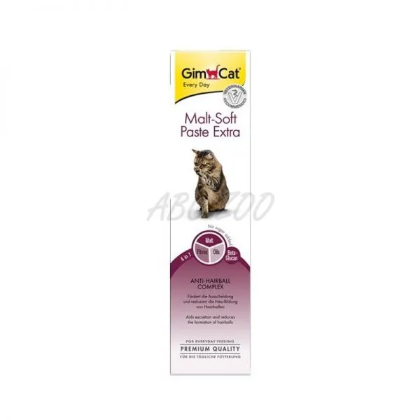 GimCat Malt Soft Extra Pasta Anti hairball complex má trojitý účinok – podporuje vylučovanie zhltnutej srsti, pomáha obmedzovať tvorbu chumáčov chlpov a pomáha predchádzať tráviacim ťažkostiam.