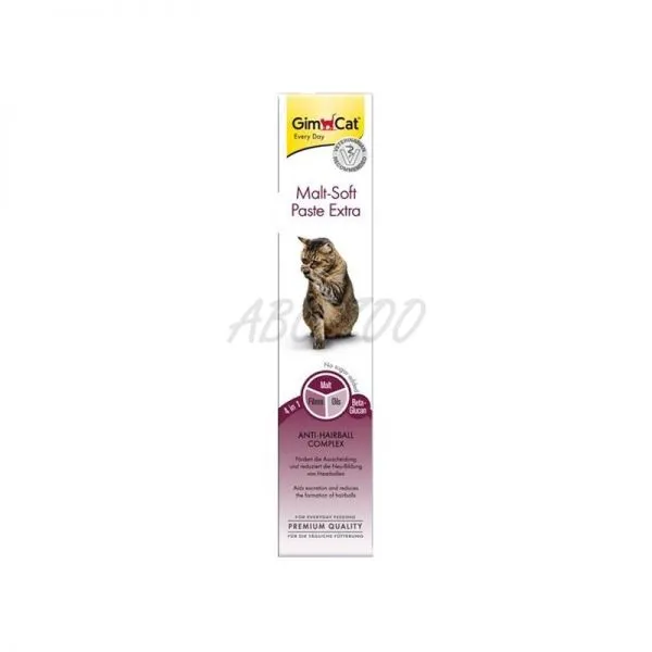 GimCat Malt Soft Extra Pasta Anti hairball complex má trojitý účinok – podporuje vylučovanie zhltnutej srsti, pomáha obmedzovať tvorbu chumáčov chlpov a pomáha predchádzať tráviacim ťažkostiam.