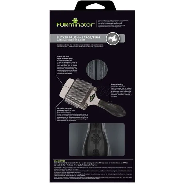 FURminator Slicker Brush Large Firm je tvrdá kefa s dvoma typmi štetín pre mačky a psy.