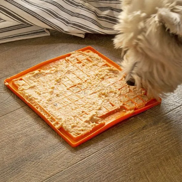 Podložka je ideálna pre ukľudnenie vystrašených psov, proti nude alebo ako tréning na zamedzenie rýchleho hltania jedla. Stačí na ňu aplikovať krmivo tekutejšej konzistencie a o zábavu je postarané na dlhú dobu.