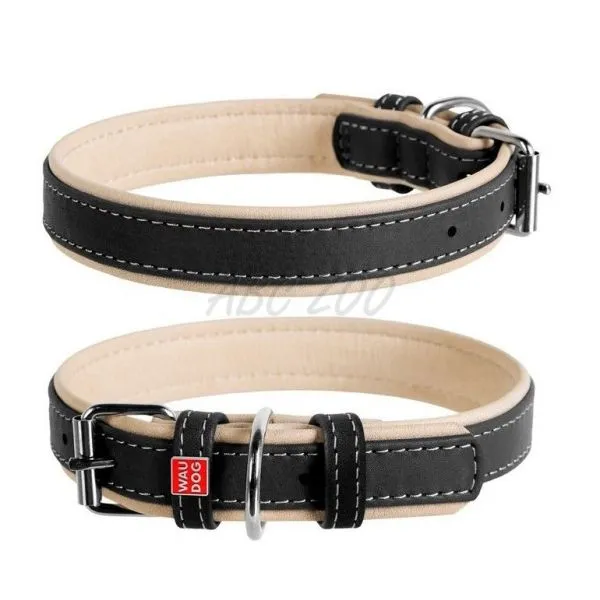 Kožený obojok WAU DOG Soft 38-49 cm, 25 mm čierno-béžový