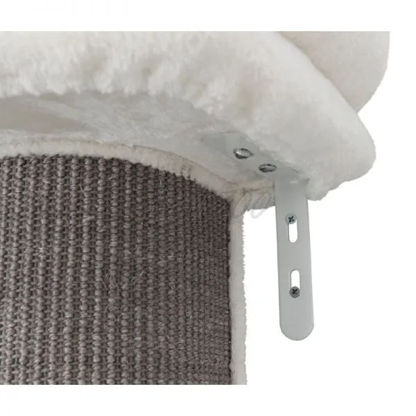Škrabadlo pre mačky vyrobené zo sisalu a plyšu je určené na pripevnenie k stene pre lepšiu stabilitu.