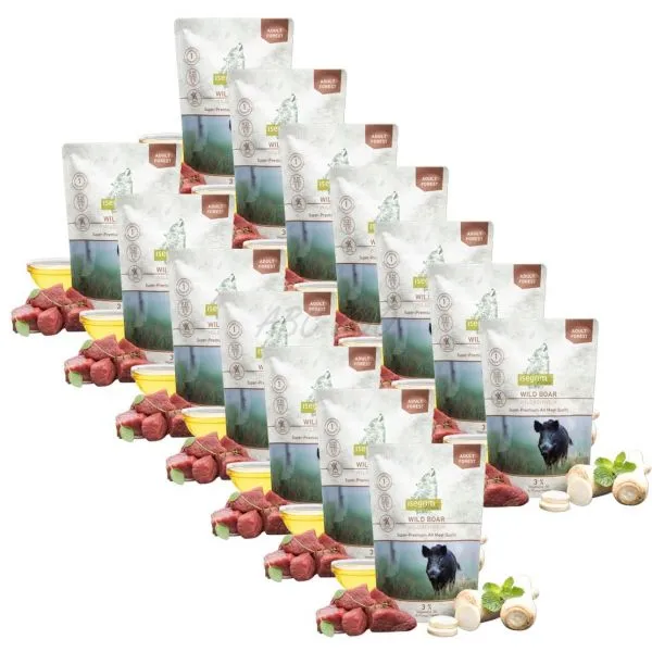 Isegrim Roots je super-prémiové monoproteínové krmivo v kapsičke z diviačieho mäsa, pre dospelé psy.