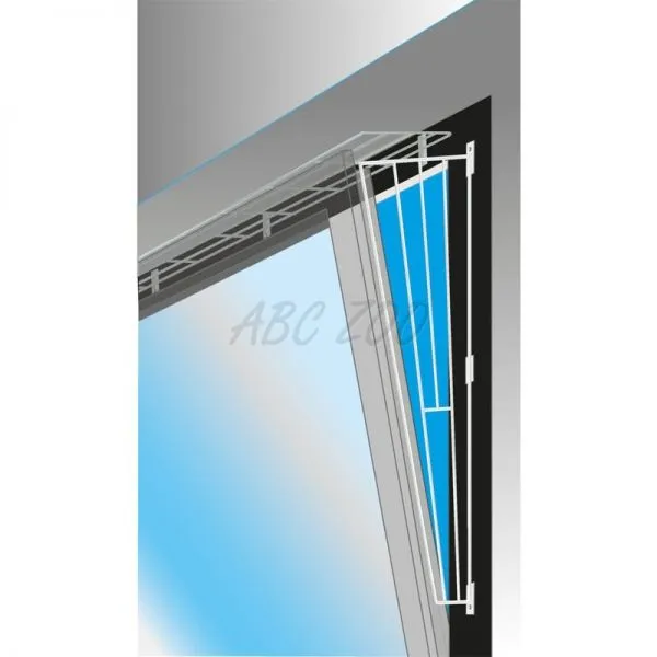 Zábrana na okno skoseného tvaru proti úteku mačky. Viac detailov