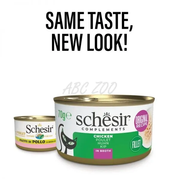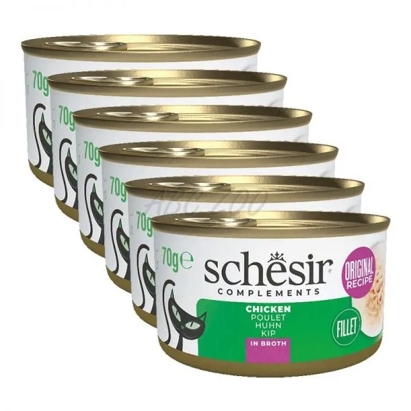 Schesir je lahodná konzerva pre dospelé mačky, plná kuracieho mäsa vo vlastnom vývare.
