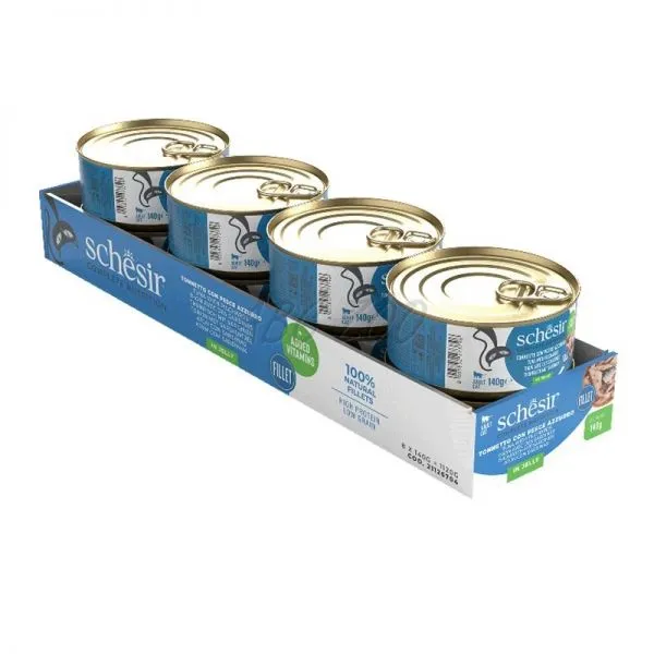 Schesir je lahodné krmivo v konzerve z tuniaka a sardiniek pre mačky.