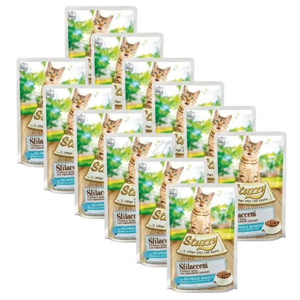 Stuzzy Cat Shreds trhané mäso z bielych druhov rýb 12 x 85 g