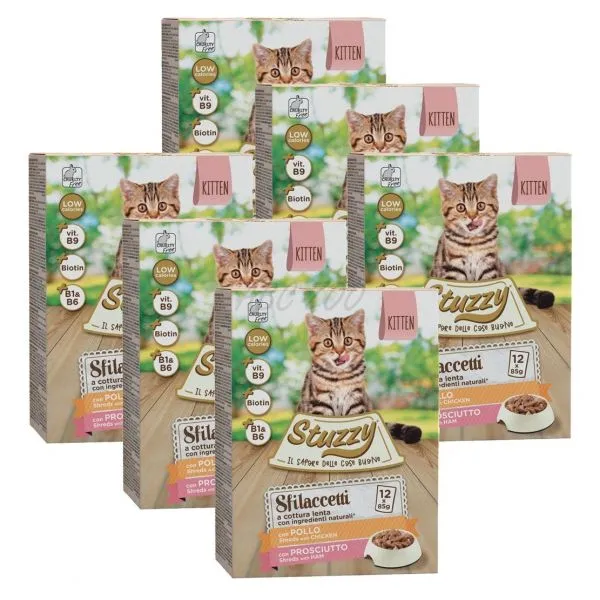 Stuzzy Cat Shreds MULTIPACK Kitten trhané kuracie a bravčové mäso 6 x (12 x 85 g)