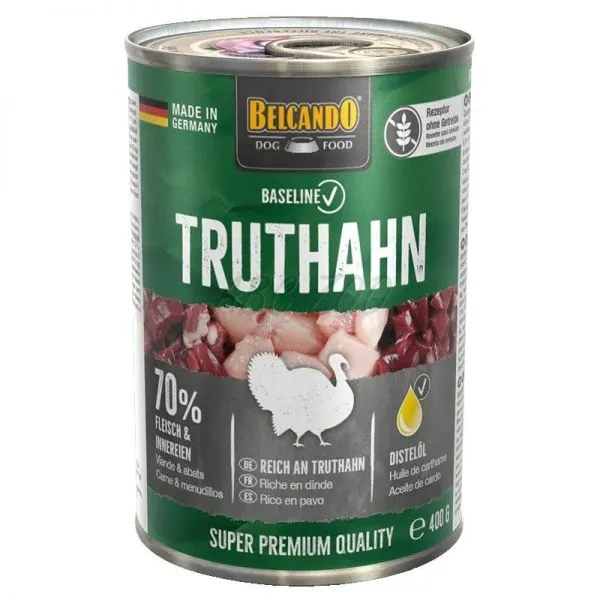 Vyvážené vlhké krmivo Belcando Baseline Turkey pre dospelé psy s bežnou aktivitou.