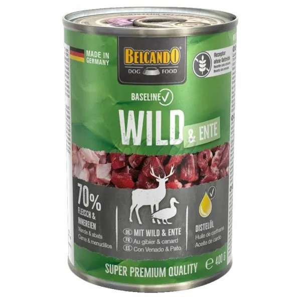 Vyvážené vlhké krmivo Belcando Baseline Venison & Duck pre dospelé psy s bežnou aktivitou.