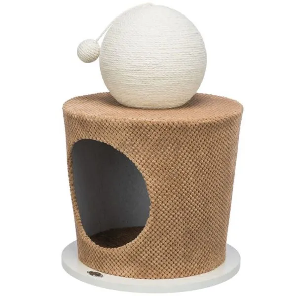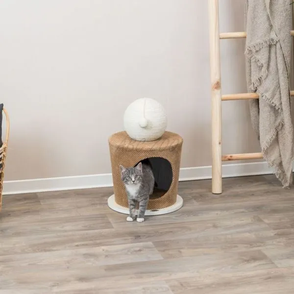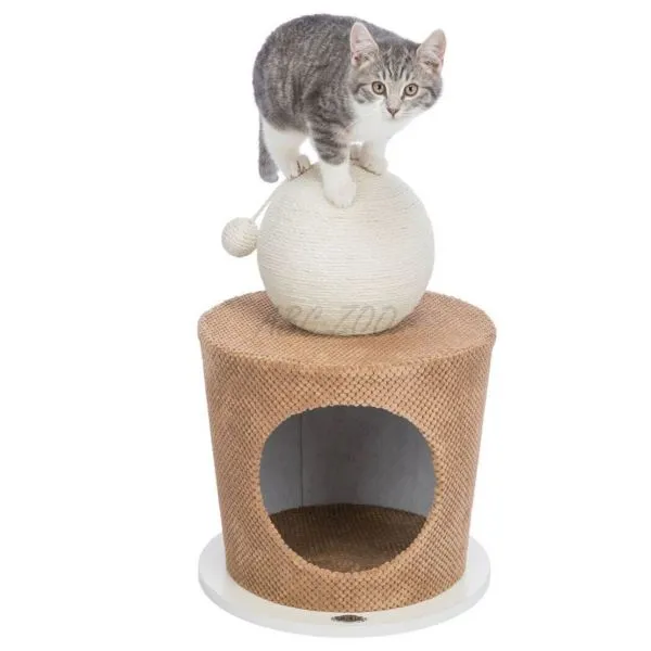 Trixie sisalové škrabadlo s loptou a jaskyňou pre odpočinok pre mačky.