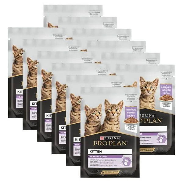 PURINA® PRO PLAN® Kitten HEALTHY START s morčacím mäsom v šťave je kompletné krmivo pre mačiatka. Pomáha podporovať správny vývoj zraku a mozgu.