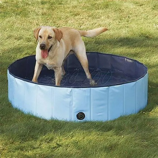 Skladací bazén pre psy v svetlo modrej farbe. Viac detailov