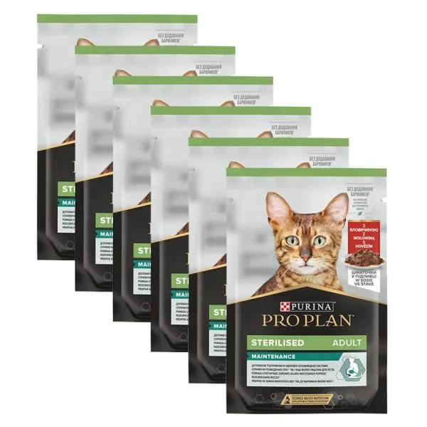 PRO PLAN Sterilised Maintenance kapsička pre mačky hovädzie v šťave 6x85 g