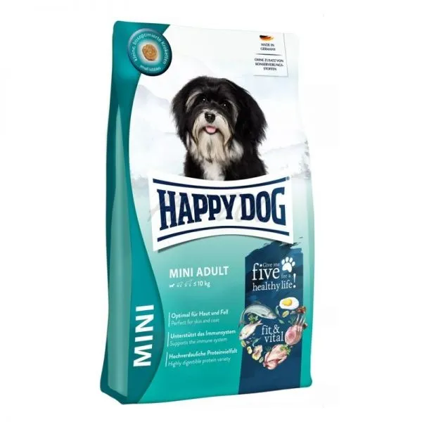 Happy Dog Mini Fit & Vital Adult je kompletné krmivo pre dospelých psov malých plemien do 10 kg s normálnou potrebou energie.