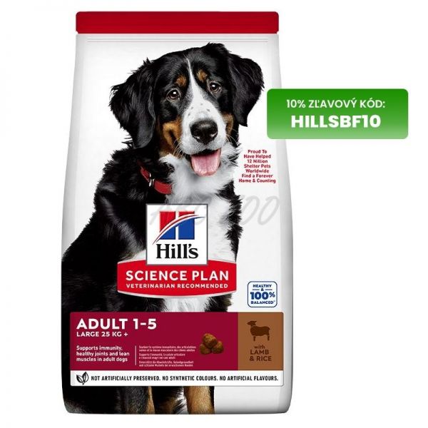 Veľké psy majú špecifické nutričné potreby, preto má Hill's Science Plan krmivo pre dospelých psov veľkých plemien s jahňacím a ryžou špeciálne zloženie pre naplnenie energetických potrieb psov veľkých plemien behom najlepších rokov života. Toto krmivo pre veľkých dospelých psov je vyrobené z vysoko kvalitných, ľahko stráviteľných ingrediencií, obsahuje vysoko kvalitné bielkoviny pre tvorbu svalovej hmoty, ďalej glukosamín a chondroitín pre zdravé kĺby a mobilitu. Vyvážená zmes omega-6 a vitamínu E vyživuje kožu pre zdravú a lesklú srsť.