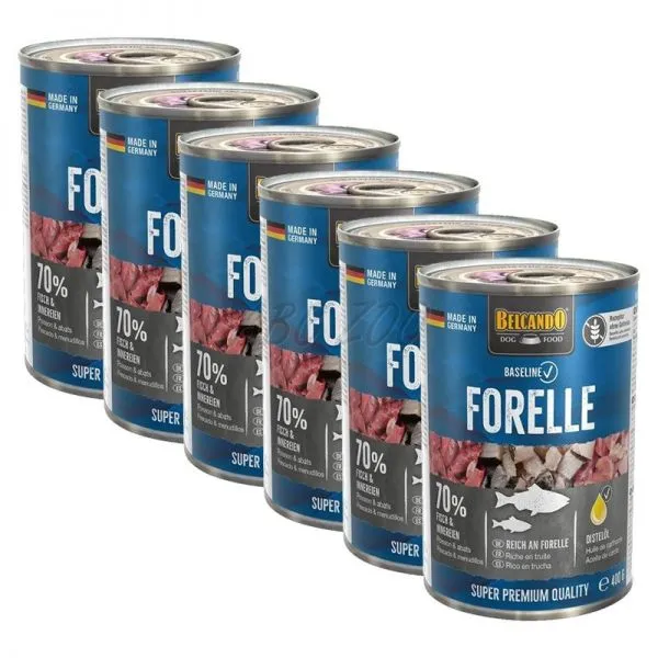 Vyvážené vlhké krmivo Belcando Baseline Trout pre dospelé psy s bežnou aktivitou.