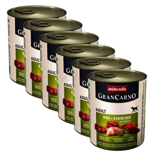 Konzerva pre psov Animonda GranCarno Fleisch Adult 800g z králičieho mäsa a byliniek. Viac detailov