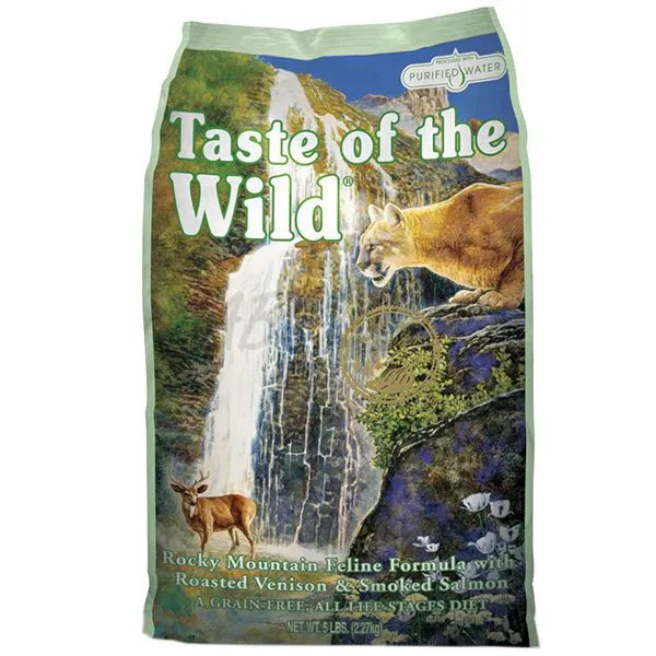 TASTE OF THE WILD Rocky Mountain Feline je kompletné krmivo vo forme granúl, určené pre mačky každého veku a všetkých druhov. Krmivá tejto značky sú nositeľom prestížnych medzinárodných ocenení a sú zaradené v zozname Top Dry Foods.