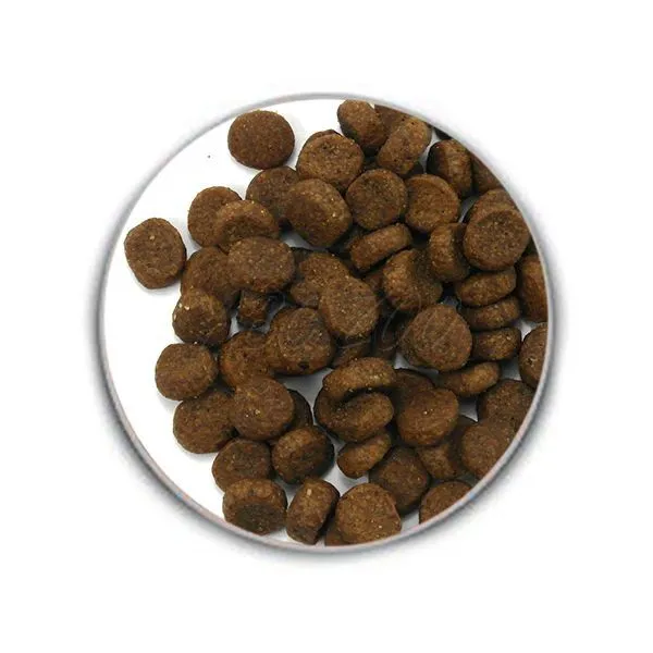 Akostné znaky: proteín 42%, tuk 18%, vláknina 3%, vlhkosť 10%, zinok 120mg/kg, selén 0,4mg/kg, vitamín E 150IU/kg, taurín 0,15%, omega-6 mastné kyseliny 2,8%, omega-3 mastné kyseliny 0,3%