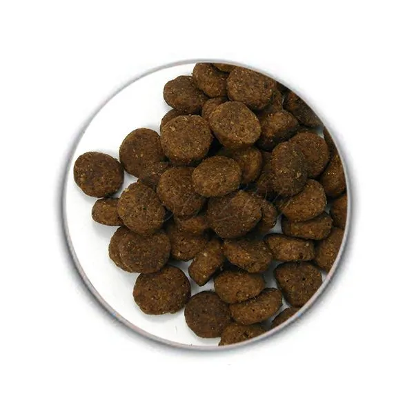 Akostné znaky: proteín 25%, tuk 15%, vláknina 4%, vlhkosť 10%, zinok 150mg/kg, selén 0,4mg/kg, vitamín E 150IU/kg, taurín 0,05%, omega-6 mastné kyseliny 2,4%, omega-3 mastné kyseliny 0,3%