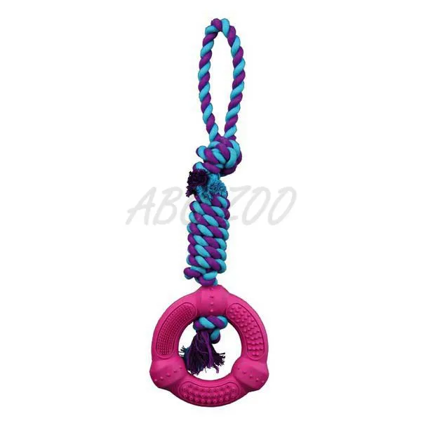 Denta Fun preťahovadlo - gumený kruh s výstupkami na bavlnenom lane.