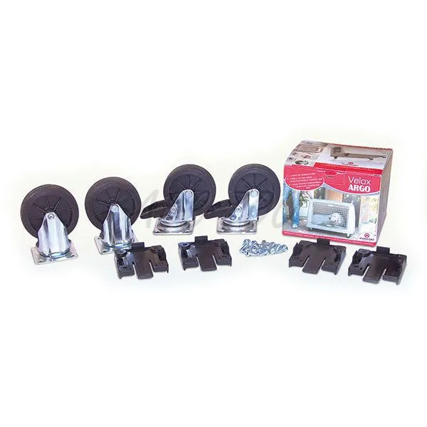 Velox ARGO - táto sada kolies umožňuje rýchlo a pohodlne presunúť prepravku. 2 riaditeľné predné kolesá s blokovacím systémom, 2 pevné zadné kolesá. Jednoduchá montáž bez nutnosti použitia náradia.