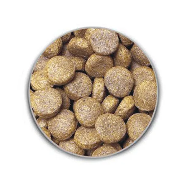 Zloženie: múčka z hydinového mäsa (26%), kukurica, jačmeň, hydinový tuk, rastlinný olej (palmový, kokosový), múčka zo sleďov (5%), ryža, jačmeň, pivovarské kvasnice sušené (2,5%), struky svätojánskeho chleba sušené, hydinová pečeň hydrolizovaná, chlorid sódny, chlorid draselný