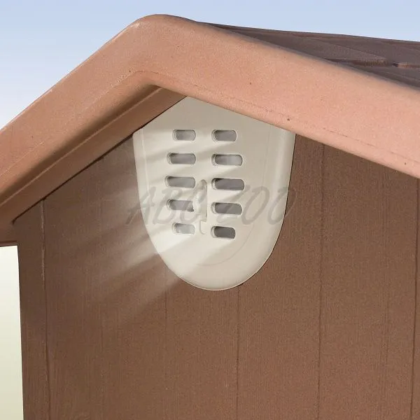 Domček pre psa z kvalitného nepremokavého plastu s imitáciou dreva. Na podlahe sú odkvapkávacie žliabky pripojené na odvodňovacie kanály. Strecha domčeka je schodovitá a nepremokavá, zabezpečí suchý interiér a zviera. Štyri protišmykové podložky sú umiestnené na nôžkach. Podlaha je vyvýšená nad zemou, takže búda pre psa sa nedotýka zeme a nepreniká zima odspodu. Domček má dvojitú stenu, slúži na lepšiu tepelnú izoláciu. Strecha sa dá pripevniť na búdu pevne pomocou spon. Cez leto môžete nechať priestor na ventiláciu vzduchu. Na zadnej strane sa nachádza ventilačné okno, ktoré sa dá jednoducho otvoriť a zatvoriť. Strecha sa dá odmontovať bielymi zátkami, čím hravo zvládnete čistenie búdy.